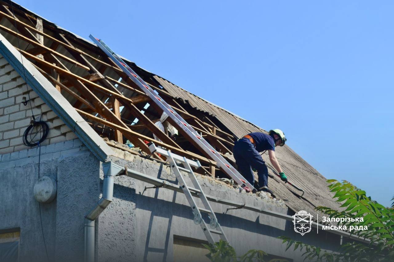 Так, станом на 7:00 2 вересня КП «Запоріжремсервіс» «закрило» вікна у 16 багатоквартирних та 150 приватних будинках, нежитловій будівлі. Використано 1061 лист OSB. Відремонтовано 430 квадратних метрів шиферних покрівель на 17 приватних будинках, одній нежитловій будівлі. Використано 141 лист шиферу. Облаштовано тимчасову покрівлю з плівки на 4 будинках на площі 288 квадратних метрів. Використано 12 рулонів плівки.