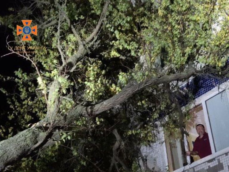 4 листопада в Шевченківському районі обласного центру у результаті поривів вітру, які досягали 20 м/с, на подвірʼї девʼятиповерхового будинку впало дерево.