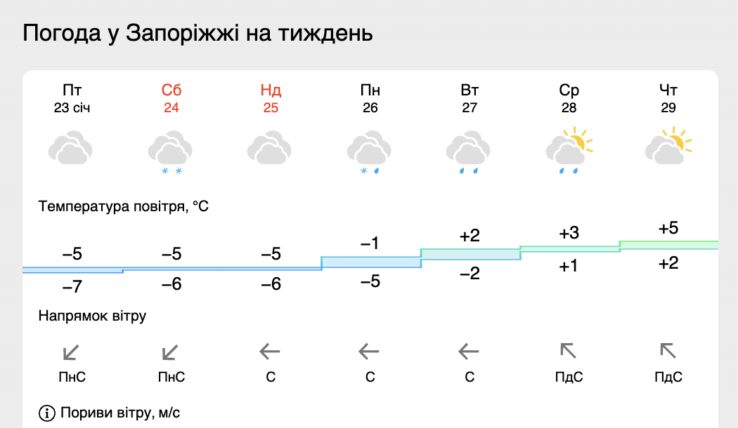 У Запоріжжі найближчими днями очікується помітна зміна погодних умов. Після кількох днів стабільних морозів синоптики прогнозують поступове потепління, яке супроводжуватиметься опадами та зміною характеру погоди.
