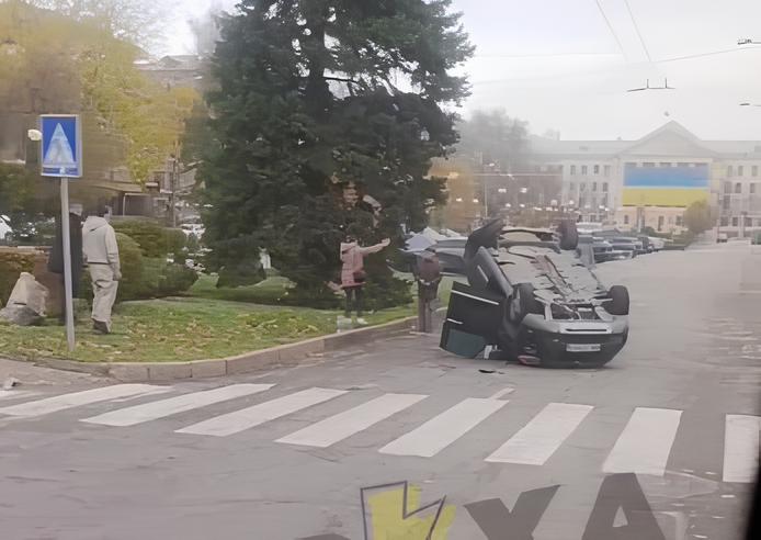 У Запоріжжі посеред дороги на бульварі Шевченка лежить перевернуте авто.