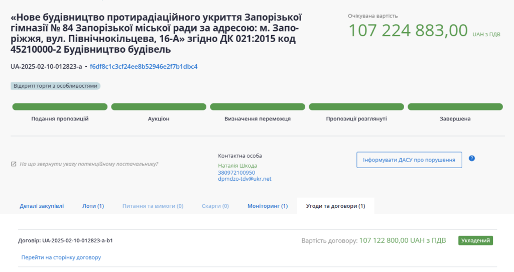 Водночас, як вказано в паспорті будівництва об’єкта, підземна школа має бути зведена вже наприкінці вересня. Будівництво розпочалось 27 березня 2025 року, а термін виконання становить 6 місяців від старта робіт.