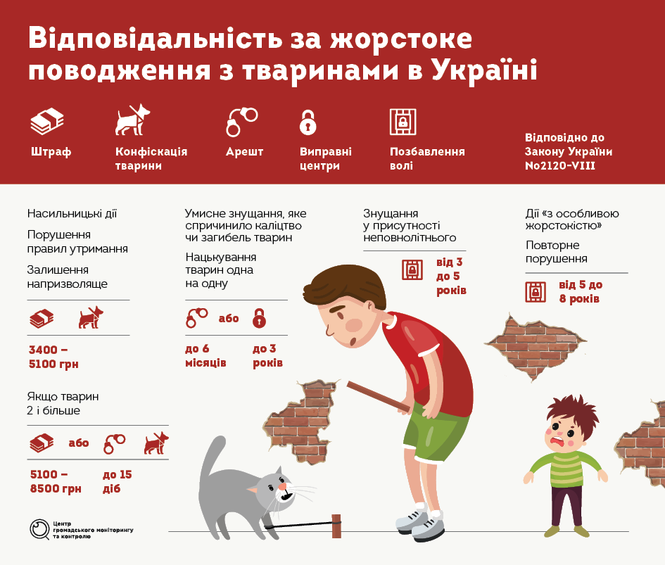 Нагадаємо, жорстоке поводження з тваринами є кримінальним правопорушенням, за яке передбачена відповідальність.