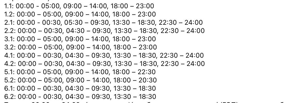 - Ті, хто належить до черг 1 і 3, — саме вони отримують три довгі відключення на добу.