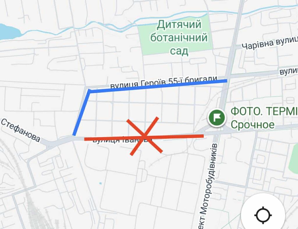Також, перекрито рух по вул. Іванова. Автобуси та маршрутні таксі рухаються в об’їзд. Можливі затримки на автобусному маршруті № 72 та маршрутних таксі №№ 4, 23, 74, 69, 89, – повідомляють в міській раді.