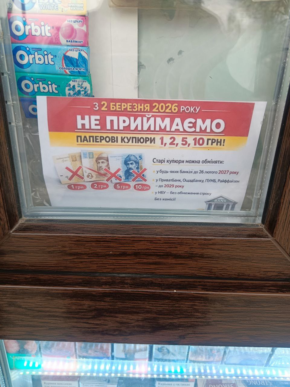 Йдеться про банкноти номіналом 1, 2, 5 та 10 гривень зразків 2003–2007 років. Від 2 березня вони втратили статус платіжного засобу, тому торгові мережі, банки та інші установи більше не приймають їх під час готівкових розрахунків.