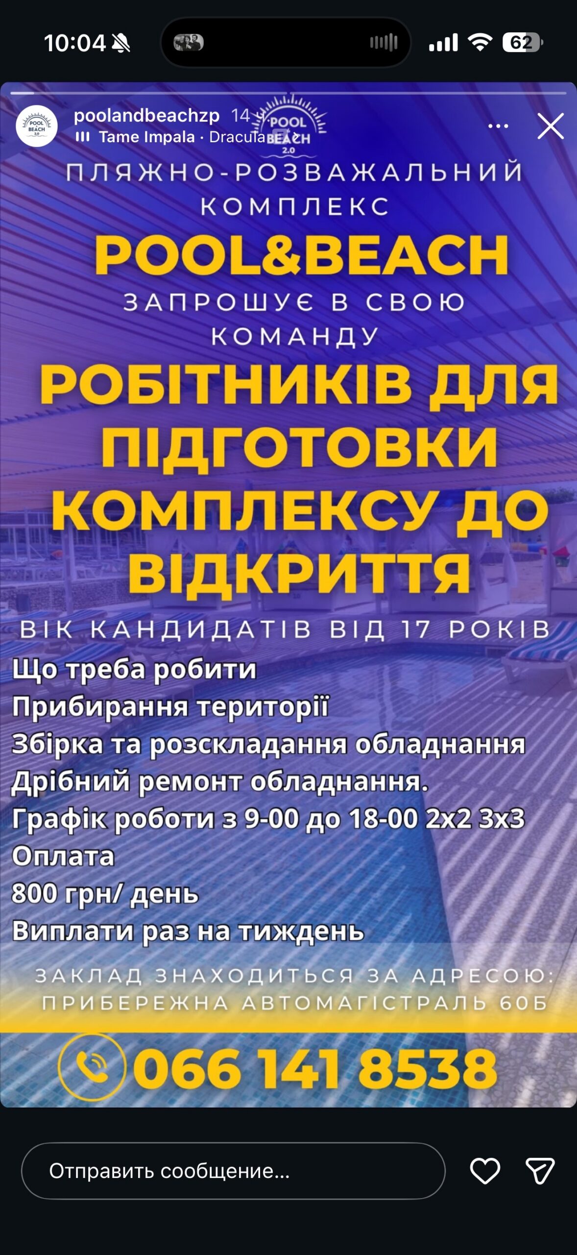 У Запоріжжі POOL&BEACH відкрив набір персоналу 2026: перелік вакансій