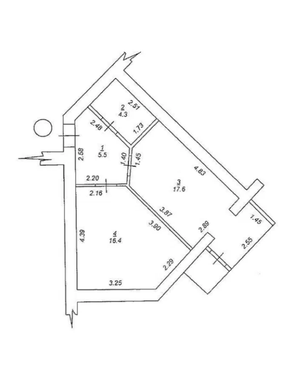 Загальна площа квартири становить 44,45 кв. м, кухня 17,6 кв. м.