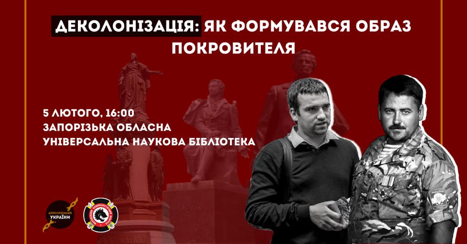 В Запорізькій обласній універсальній бібліотеці пройде відкрита зустріч “Деколонізація: як формувався образ покровителя”. Депутат фракції «Європейська Солідарність» в Запорізькій міській раді Вячеслав Зайцев, як історик, прочитає лекцію на тему деколонізації.