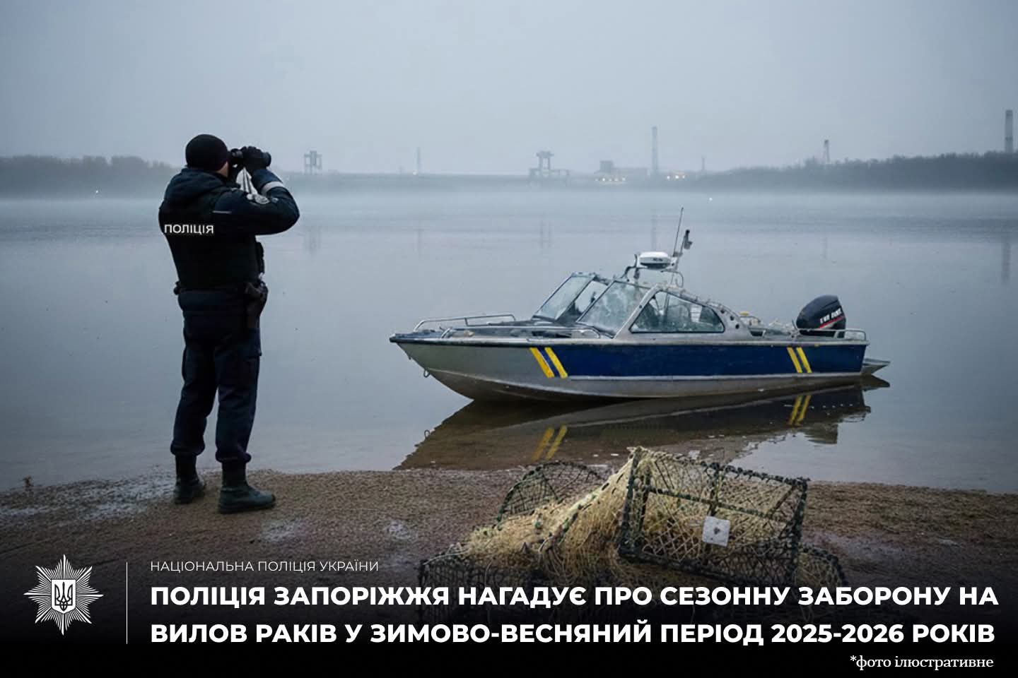 Поліція Запоріжжя нагадує громадянам про початок сезонної заборони на вилов річкових раків, яка триватиме з 1 грудня 2025 року до 30 червня 2026 року.