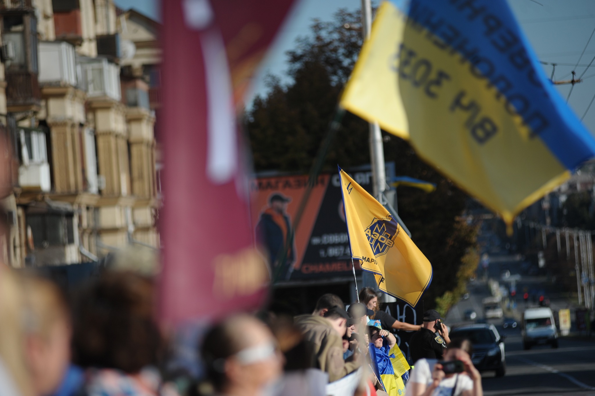 Під час акції на проспекті було вивішено банери з написами «Волю всім полоненим», а учасники акції скандували відповідні гасла.