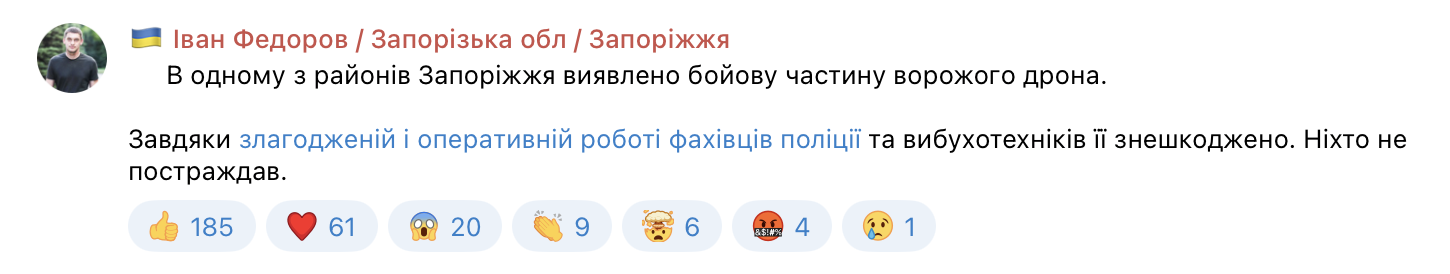 Таким чином, інцидент став радше сигналом про пошук нових форм тиску, ніж масштабною загрозою. Але для ППО Запоріжжя це ще один аргумент нарощувати засоби боротьби з безпілотною технікою.