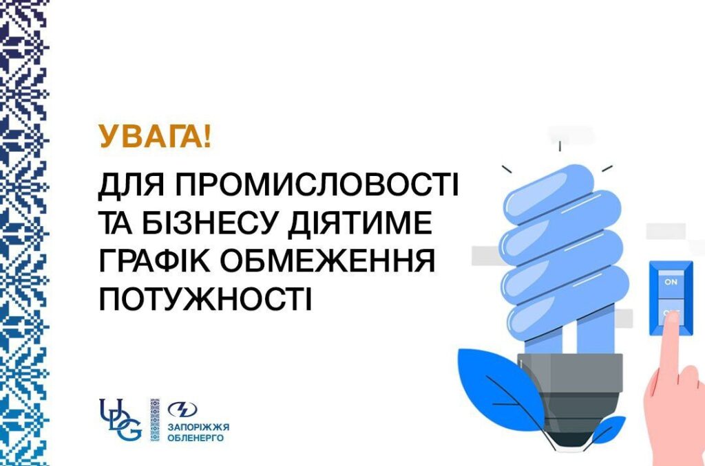Сьогодні, 20 жовтня, у Запоріжжі та по всій Україні діють графіки обмеження потужності (ГОП) для промислових підприємств і бізнесу. Відповідне рішення ухвалено за вказівкою НЕК «Укренерго» з метою забезпечення стабільної роботи Об’єднаної енергосистеми України.