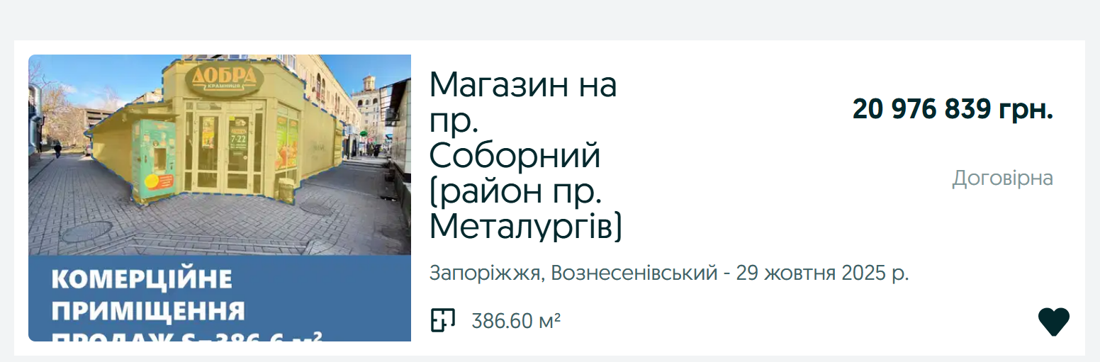 У Запоріжжі виставили на продаж магазин за 21 млн грн: як він виглядає (ФОТО)