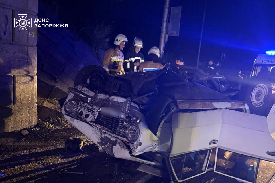 У Запоріжжі з понівеченого авто дістали 16-річного водія: він в’їхав у мостову опору