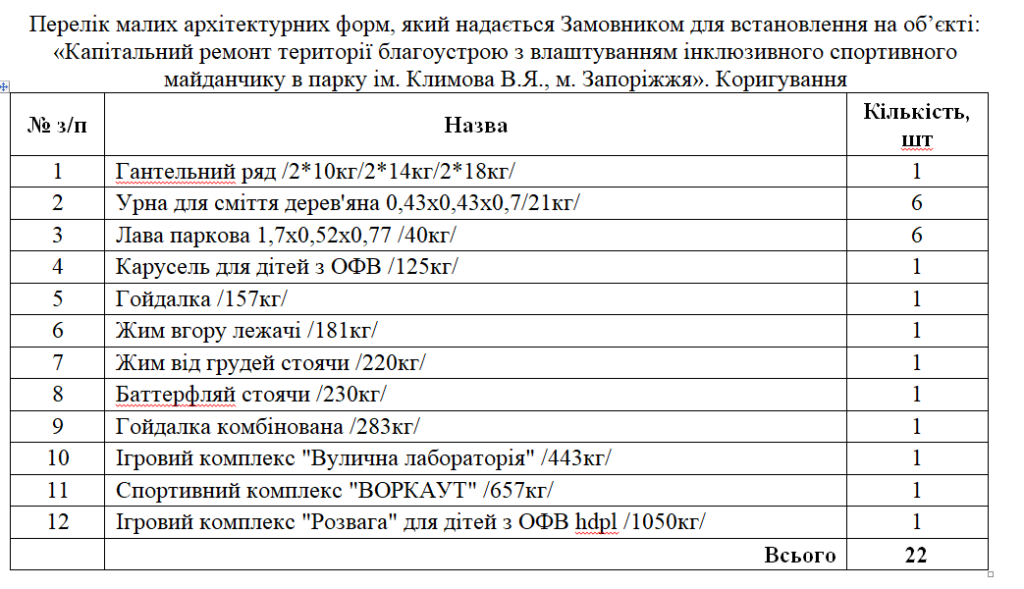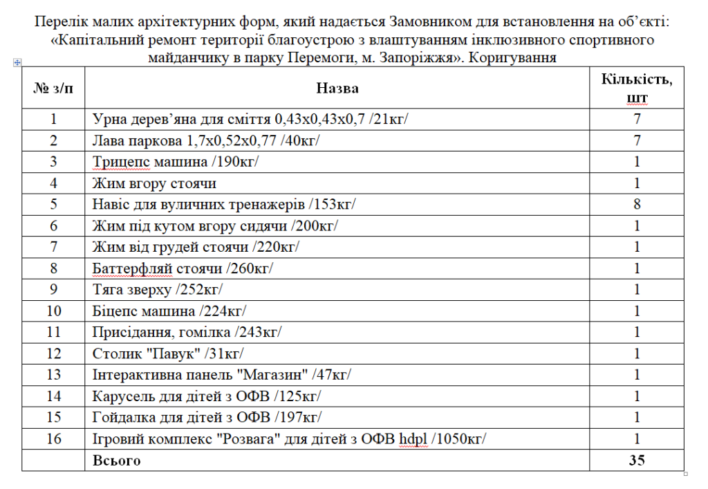 Згідно з тендерною документацією, в парку виконали наступні роботи: