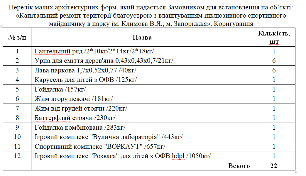 - ігрові комплекси для дітей (гойдалки, каруселі тощо),