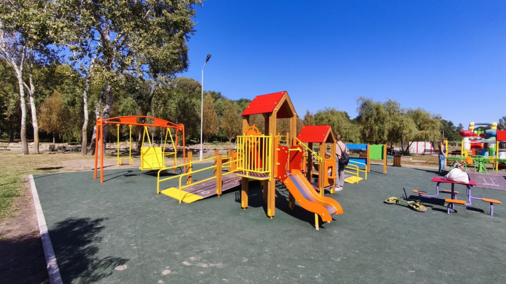 У парку ім. Гутника-Залужного (Дніпровський район) встановлено бортовий камінь, залито бетонне покриття для подальшого монтажу обладнання та нанесення гумового покриття. Проєкт реалізує ТОВ «СПІВДРУЖНІСТЬ АВІА БУД».