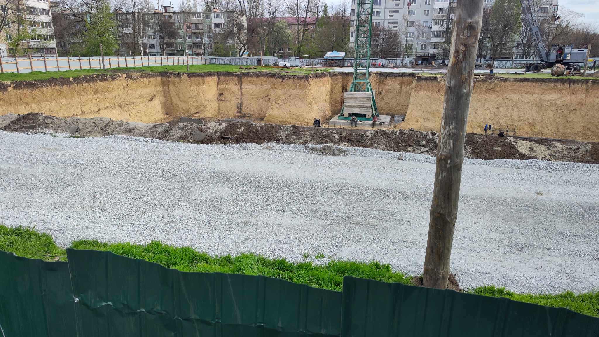 Монтаж будівельного крану тривав кілька днів. Наразі роботи активно продовжуються на глибині приблизно 7–8 метрів.