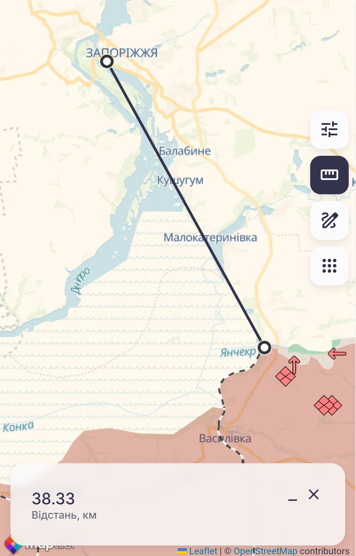 Це приблизно в 40 км від лінії фронту. Швидше за все росіянами було застосовано дрон-матку, що FPV зміг здолати таку відстань. Надалі, можливо, його було заглушено діями РЕБ.