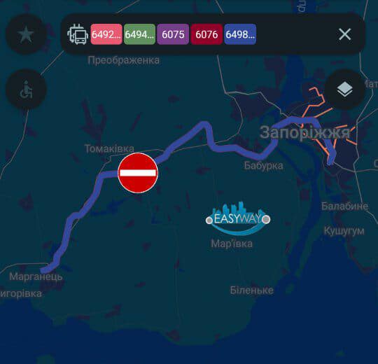 - Електропоїзд №6494/6493 Запоріжжя-1 — Марганець здійснюватиме рух лише до станції Канцерівка. Відрізок Канцерівка — Марганець тимчасово виключено з маршруту.