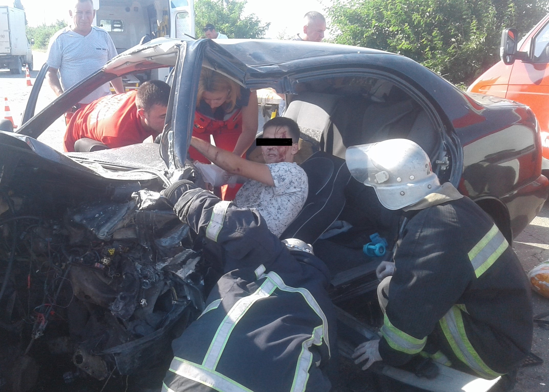 25-летнего водителя Daewoo Lanos зажало конструкциями понивечинои автомобиля. Спасатели с помощью специального оборудования деблокировали мужчину и передали работникам скорой медицинской помощи. Также во время ДТП пострадали 57-летний мужчина, две девочки 2-х и 7-ми лет и два мальчика 3 и 8 лет.