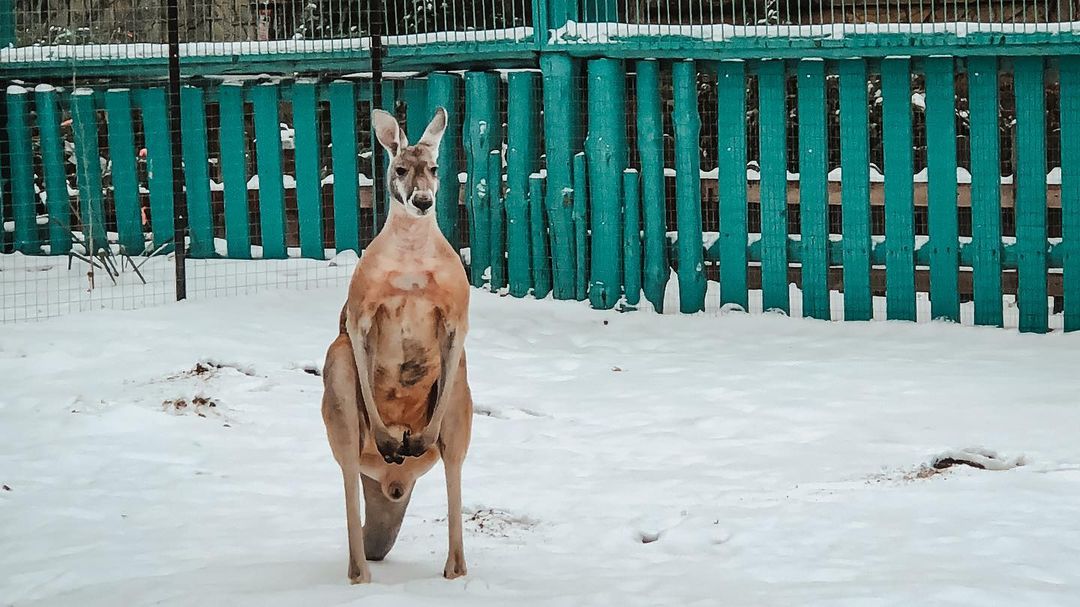 В Бердянском зоопарке “Сафари” кенгуру впервые увидел снег и прошелся по нему.