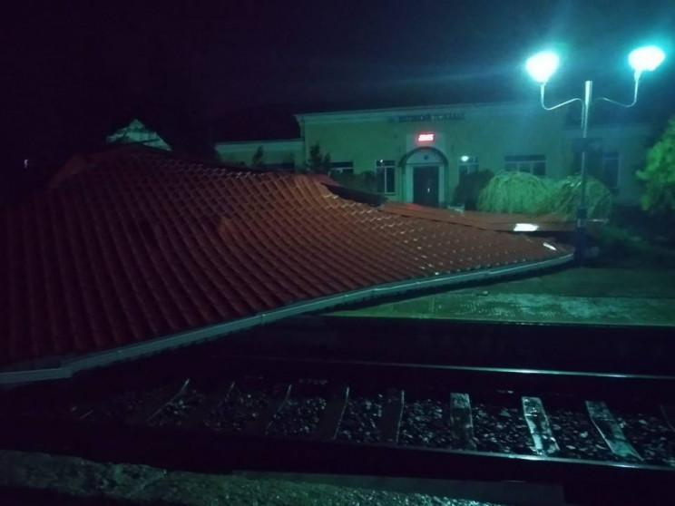 Сообщается, что шквальный ветер сорвал новую крышу с одного из зданий на железнодорожной станции “Токмак”. Крыша упала на рельсы, передает “Забор“.