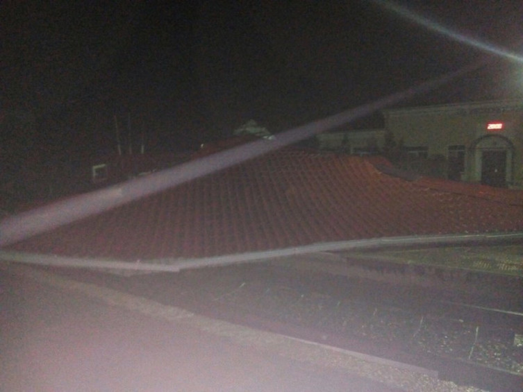 В Запорожской области, в Токмаке, 22 марта, на ЖД-станции сильный ветер сорвал крышу.