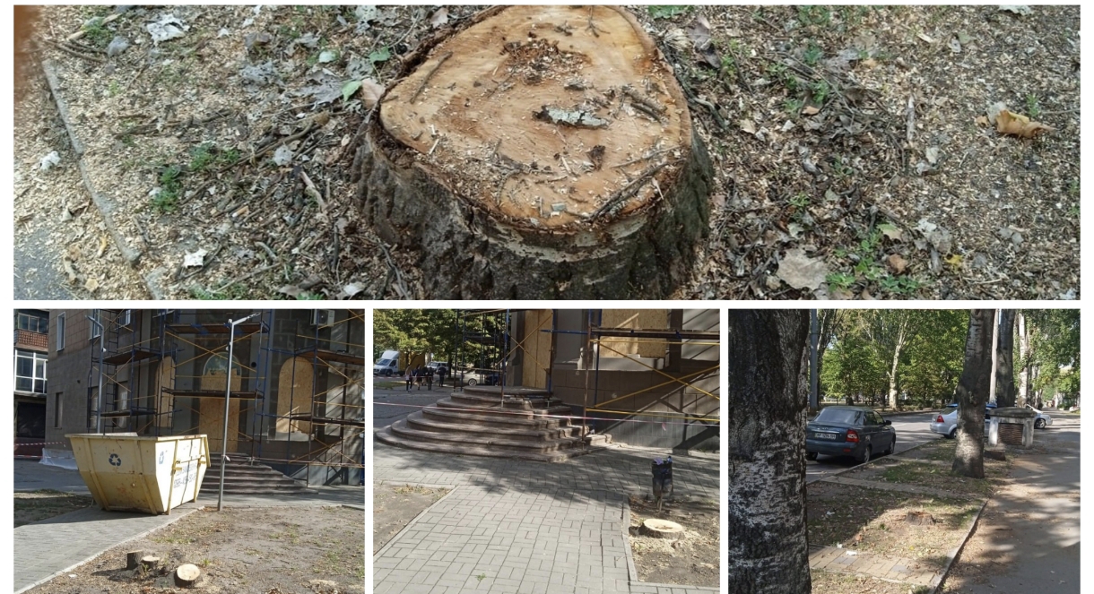 У липні під час ремонтних робіт спиляли липу на зупинці навпроти концертної зали ім. Глінки, наприкінці серпня – немов у подарунок городянам до Дня Незалежності – спилили кілька міцних ще, не порожніх та не трухлявих тополь на пр. Металургів. Про те, що дерева були здоровими, а отже, не аварійно небезпечними, красномовно говорять спили (див. фото).