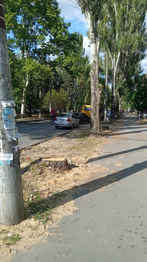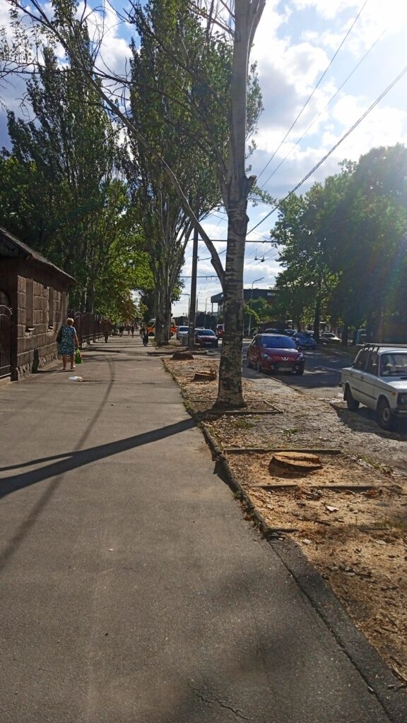 В Дніпровському районі м. Запоріжжя місцева влада бездумно спилює абсолютно здорові дерева. На жаль, громадськість ніяк на це не реагує – що цілком зрозуміло. Багато хто з активних громадян елементарно виїхали з міста, іншим не до того – фронтові зведення та звістки з політичних фронтів займають усі їхні думки. Виходить, що під шум війни Дніпровська районна адміністрація – адже це у її веденні питання благоустрою підвідомчої території – бездумно та безкарно спилює здорові дерева.