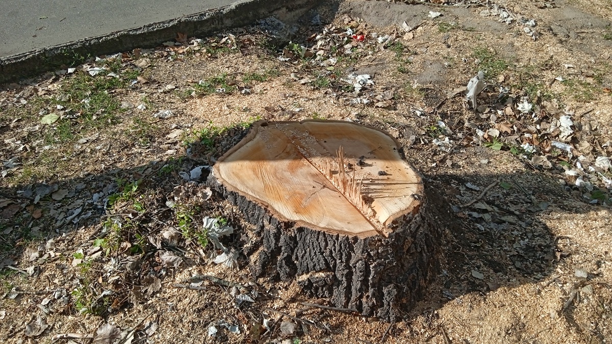 У липні під час ремонтних робіт спиляли липу на зупинці навпроти концертної зали ім. Глінки, наприкінці серпня – немов у подарунок городянам до Дня Незалежності – спилили кілька міцних ще, не порожніх та не трухлявих тополь на пр. Металургів. Про те, що дерева були здоровими, а отже, не аварійно небезпечними, красномовно говорять спили (див. фото).