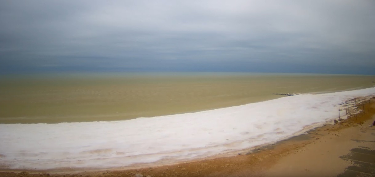 На побережье Кирилловки засняли необычное явление “прибрежный капучино”.