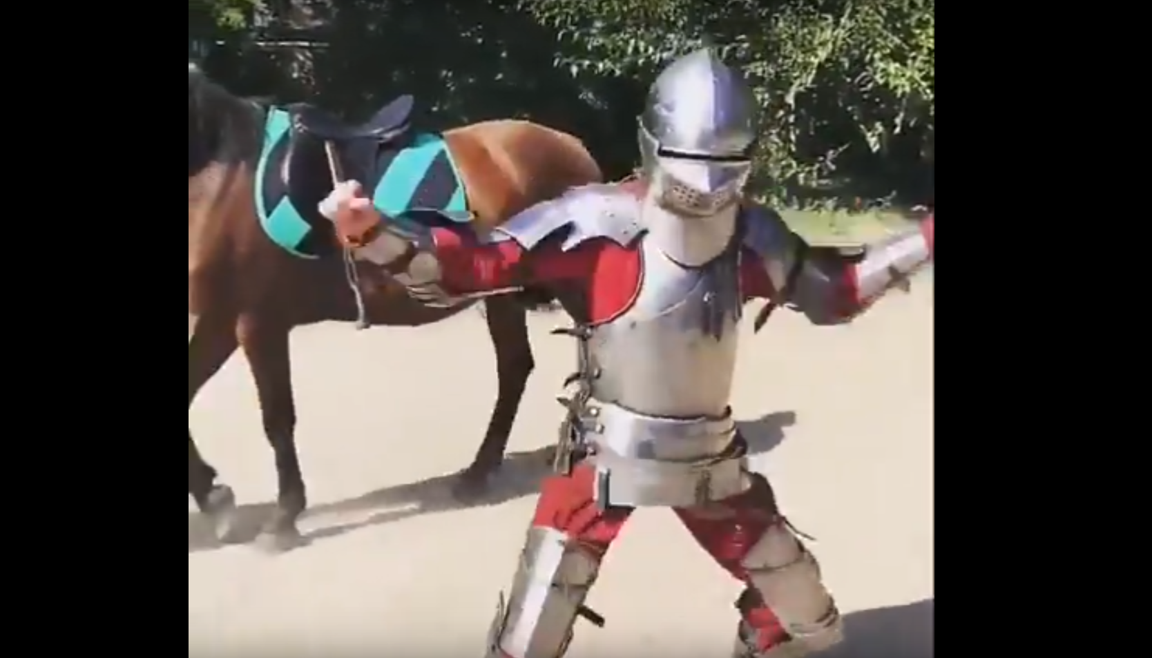 Жители Мелитополя тоже решили поучаствовать в челендже, но по-своему. Один из мелитопольцев надел доспехи рыцаря и забрался на лошадь. Прокатившись на ней, он спрыгнул и начал танцевать, а лошадь в этот момент шла. Что случилось дальше, смотрите в видео: