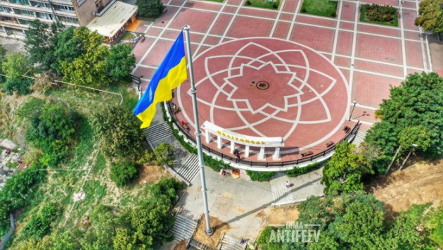 В Мелитополе установили флагшток с украинским флагом высотой 36 метров. Высота флагштока, установленного на Хортице – 35 метров, но он стоит на высоте 90 метров над уровнем моря и считается самым высоким в Украине.