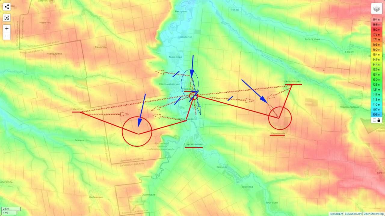 ⏩ По-четверте, зі сторони (річки) Урожайного простіше вийти до Завітного Бажання-Старомлинівка ніж через висоти між Приютним-Старомлинівкою.