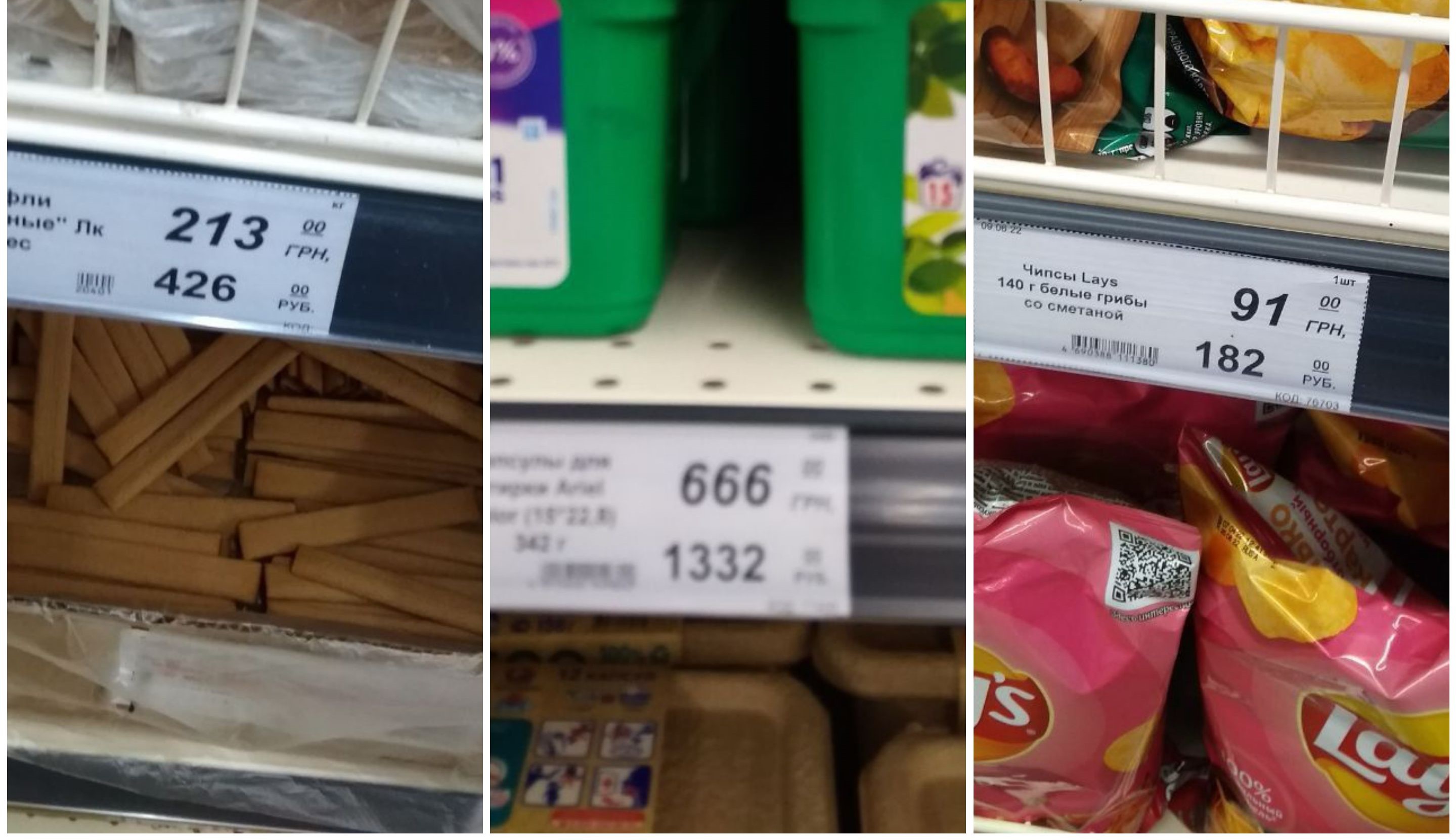 В Telegram-канале “Пруф” опубликовали фотографии товаров и стоимости на них в одном из магазинов временно оккупированного Бердянска.