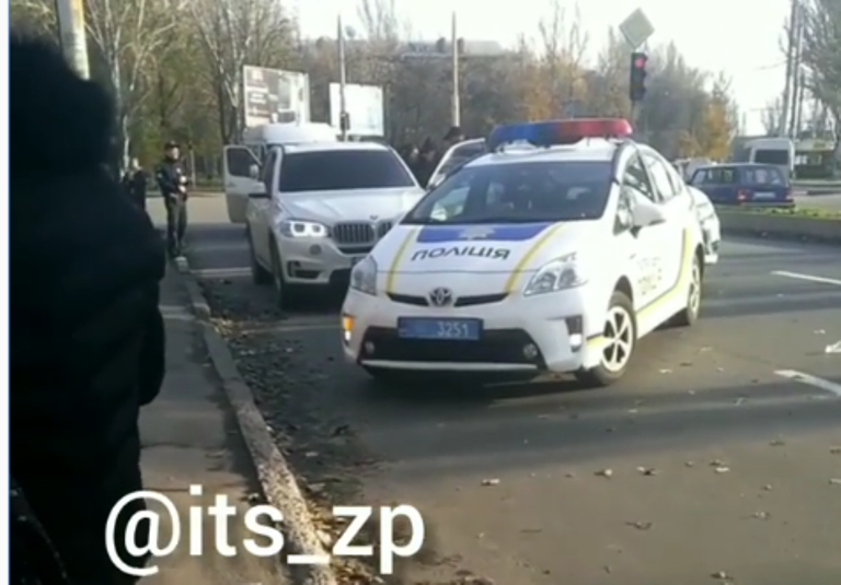 В сети появилось видео, как патрульные оцепили BMW со стрелявшими в Запорожье