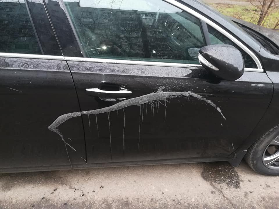 Во дворе спального микрорайона Хортицкого жилмассива неизвестные облили несколько автомобилей кислотой.