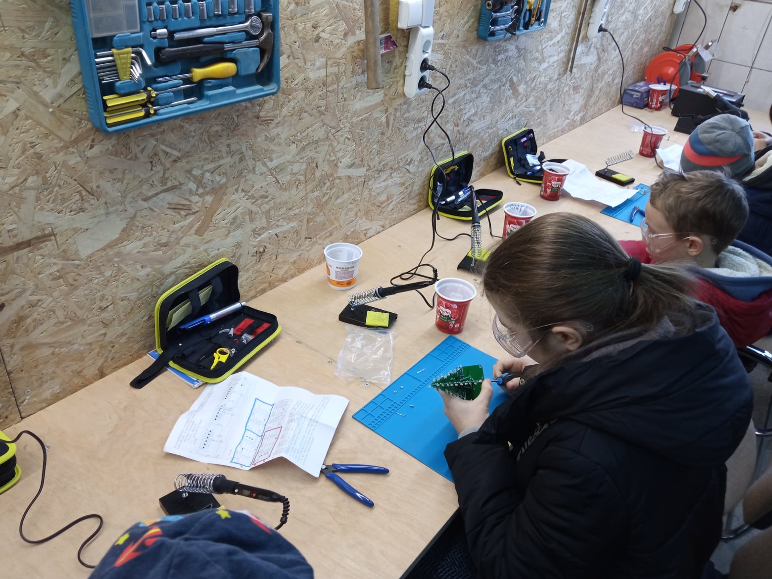 Его можно будет посетить до 7 января 2022 года. Для его реализации дети из запорожской школы робототехники “Вперед в будущее”учились паять новогодние ёлки.