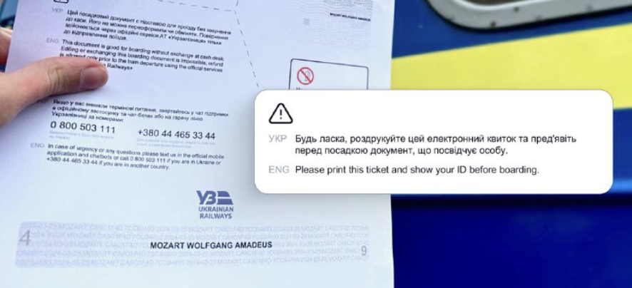 Пассажиры, которые приобрели билет в Венгрию или Австрию через приложение, получают от «Укрзализныци» сообщение о необходимости распечатать только что приобретенный билет.