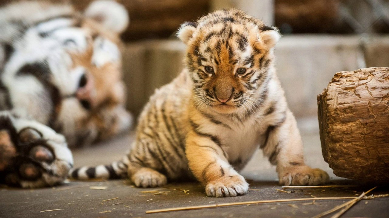 Рядом с тигренком на видео запечатлен носок мужского ботинка, по которому можно сделать вывод, что хищник еще совсем маленький.