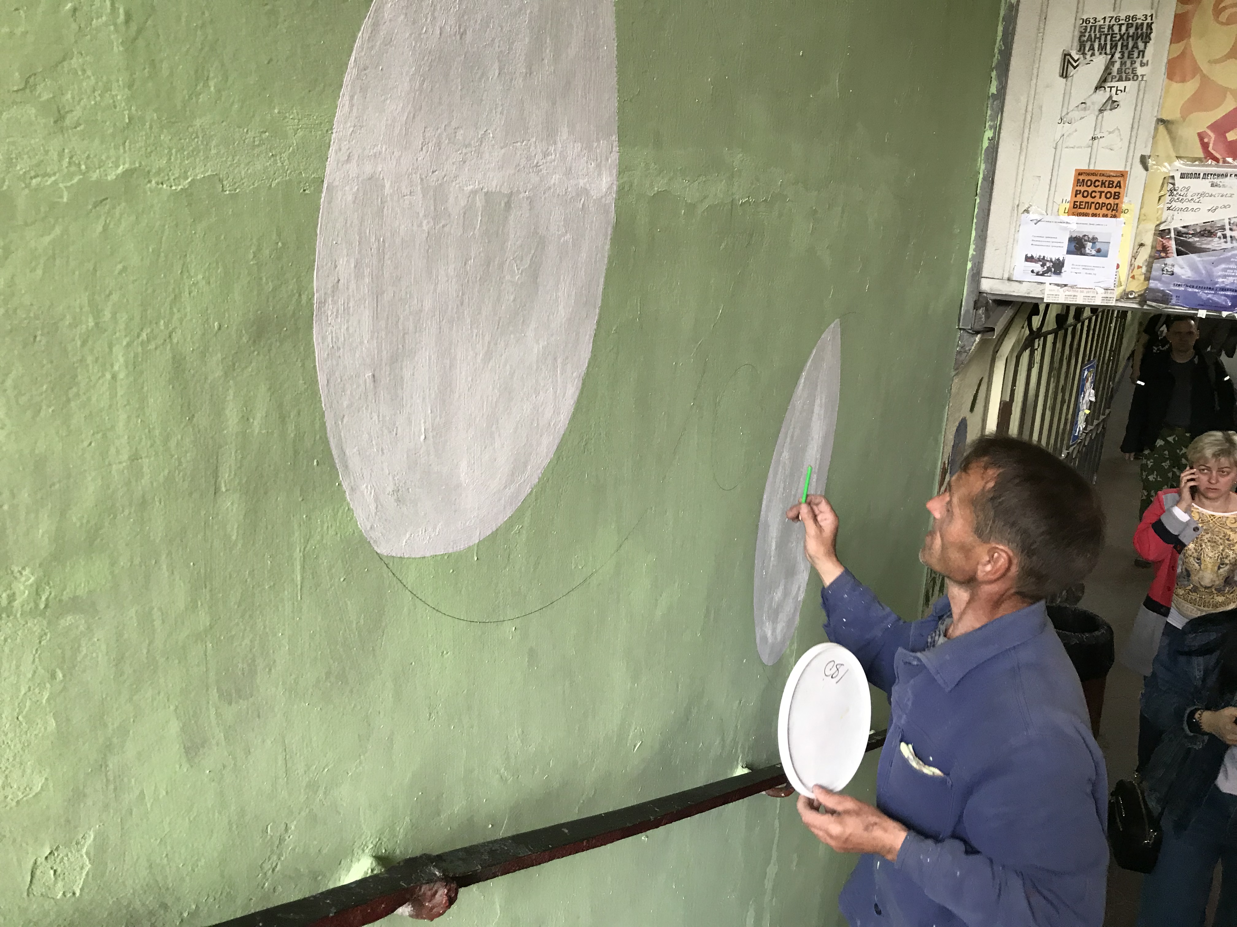 Вчера, 26 апреля, в пешеходном переходе на Сталеваров Александр Харьковский снова был замечен с кистью в руках
