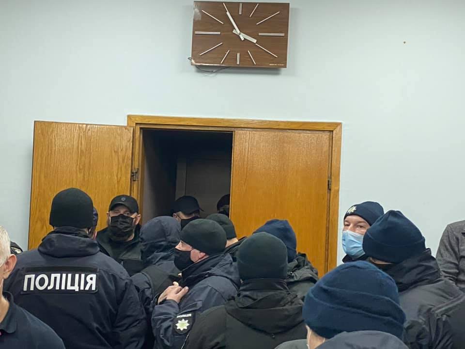 Ранее сегодня в сессионном зале облсовета на удалось собрать кворум для проведения сессии. После этого часть депутатов под прикрытием неизвестных в масках и полиции заняла зал № 300 областного совета, где и провели заседание.