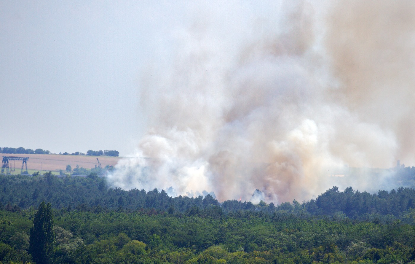Прямо сейчас, около двух часов дня 27 июля, в Запорожье горит остров Хортица.