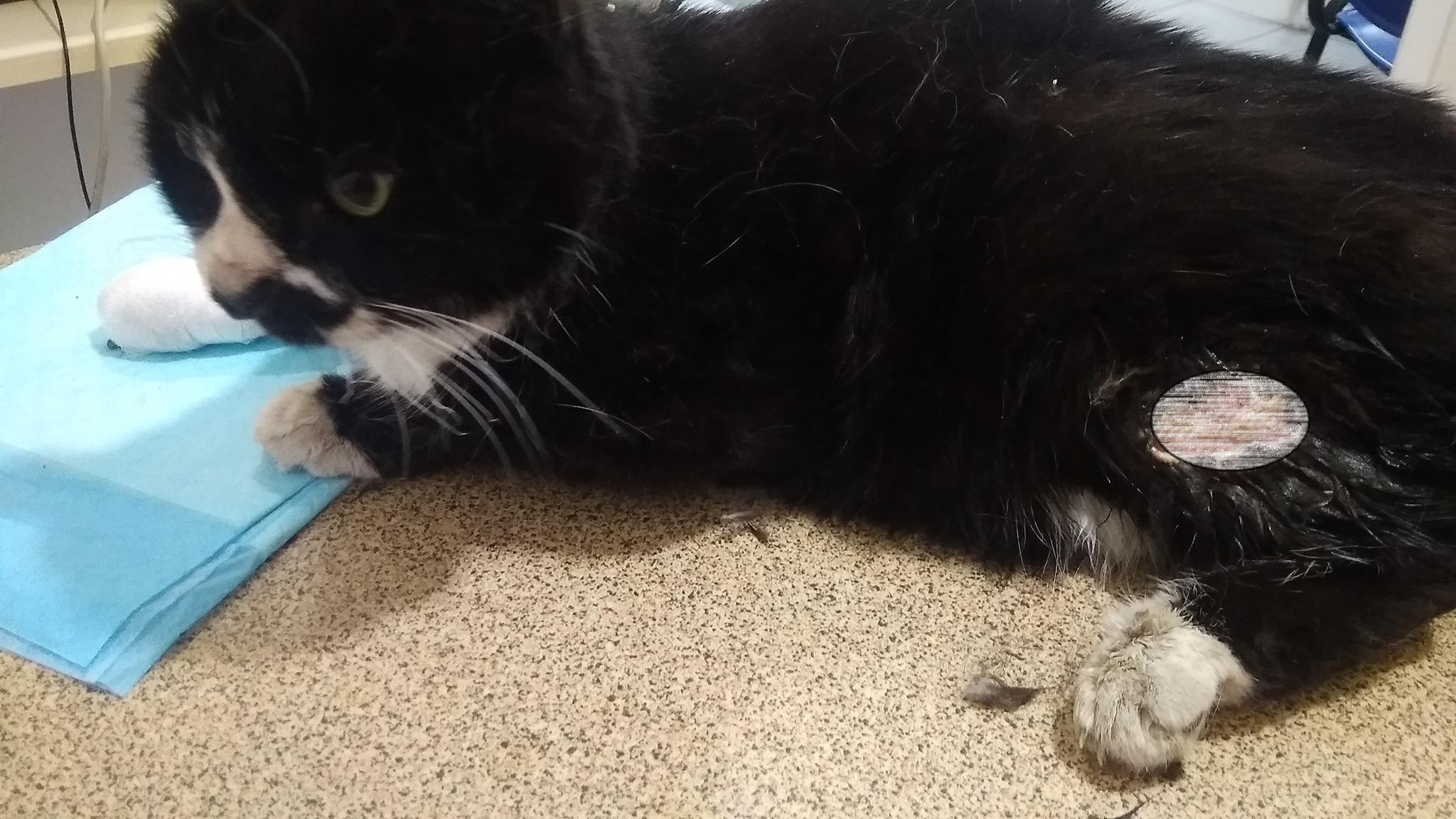 “Запорожье.Новости по котику с Дорошенко не радостные. Хозяина так и не нашли,Васька так его назвали ребята которые нашли не выпадал из окна!!!Он стал жертвой садистов. Васька весь в ожогах. Кот терпел ужасную боль, как не умер от болевого шока просто чудо. Были в нескольких клиниках. Итог трещина нёба, кот не кушает от боли, ротик обожжен,ушко некрозное (кусочек ушка отпадет) множественные ожоги лап и туловища. Сегодня в Фауне с Иваном Сергеевичем снимали некрозную ткань, Васенька даже не пикнул, терпел как взрослый мужчинка”, – рассказывает в Фейсбук Ирина.