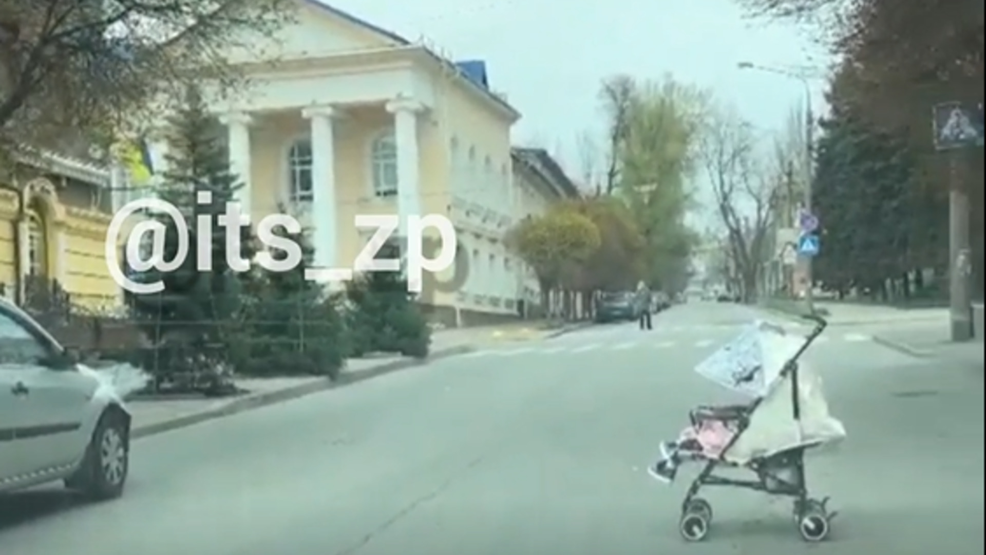 Сегодня, 30 марта, в Запорожье горе-мать оставила коляску с ребенком посреди проезжей части.