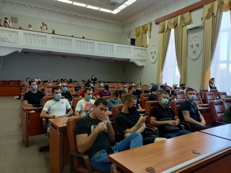 В Запорожье места депутатов перед сессией заняли неизвестные, скрывающие свои лица (ФОТО)