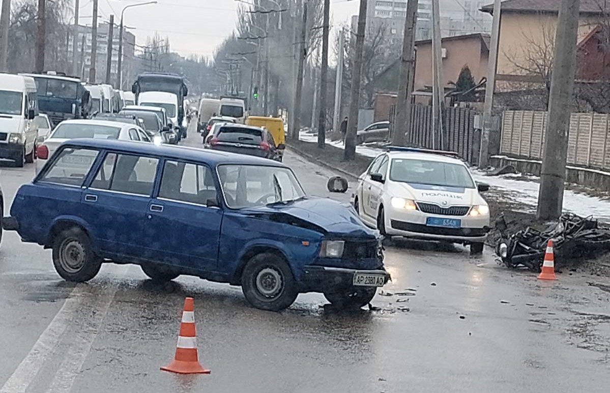 Утром во вторник, 1 февраля, в Космическом микрорайоне города Запорожья между остановками общественного транспорта “Южный рынок” и “Оранжерейная” произошло дорожно-транспортное происшествие с участием нескольких транспортных средств – легкового автомобиля “Жигули”, маршрутки и мотоцикла.