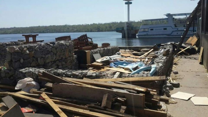 “Множество нареканий у запорожцев вызывает строительство кафе на Набережной. Жалобы продолжаются уже несколько лет, а в прошлом году рядом в кафе произошел пожар и оно сгорело до тла. Сегодня увидел, что работы ведутся снова. Судя по всему происходит расширение существующего кафе, из гранитного бута по “оригинальной” технологии выкладываются стены, предусматривается настил и заливка опалубки. Есть ли декларация на начало строительных работ – неизвестно; согласительные документы с пожарной охраной, санэпидемстанцией, Вознесеновской районной администрацией – под вопросом! Помню, что в прошлом году, когда пытались сделать площадку над водой, разрешительных документов, не было. Тогда на первоначальном этапе не без вмешательства городских властей строительство было остановлено. Кстати, остатки свай так и остались на песчаной зоне”, – пишет Афанасьев.
