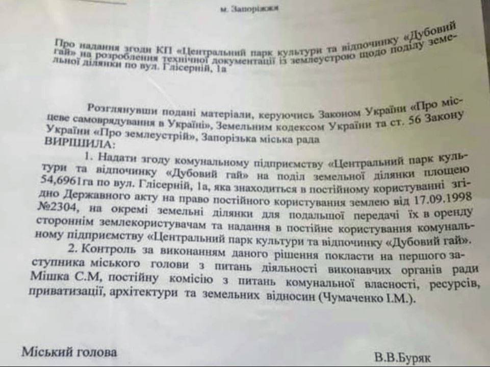 Экоактивист Николай Ралик на своей странице в Фейсбук пишет о том, что городскими властями планируется принять решение об официальном выделении земли ресторану “Санрайз” на территории парка “Дубовый Гай”. При этом сам гостинично-ресторанный комплекс на территории центрального парка отдыха Запорожья до сих пор не имел землеотвода.